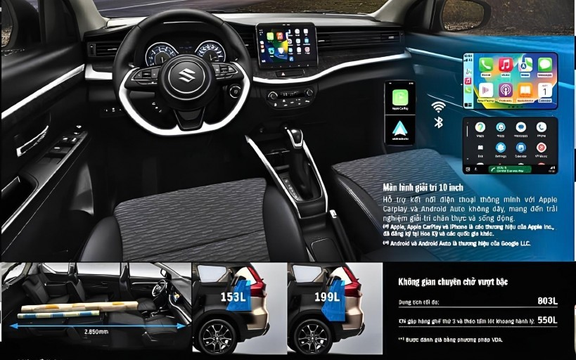 Suzuki XL7 hybrid 2025 có các trang bị đầy đủ tiện nghi hiện đại làm hài lòng quý khách: Chìa khóa thông minh, Màn hình cảm ứng 10 inch tích hợp camera lùi, tính năng kết nối giải trí không dây Android Auto và Apple CarPlay, SmartPlay Studio. Hệ thống điều hòa tự động với 2 dàn điều chỉnh độc lập. Chế độ lái thể thao. Gương chiếu hậu chỉnh điện gập điện tích hợp báo rẽ. Vô lăng chữ D thể thao bọc da tích hợp các phím giải trí, nhắc nhở thắt dây an toàn, khóa chống trộm.…là những option được trang bị trên mẫu SUV này.