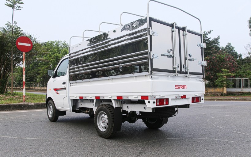 Thùng xe SRM-K990 mui bạt được thiết kế dài rộng hơn so với những dòng xe cùng phân khúc. Với nhiều mẫu mã thích hợp chở được nhiều loại hàng hóa và quy cách hàng hóa khác nhau từ: Chở nông sản, nhôm kính, hoa quả, văn phòng phẩm…. Đặc biệt, bửng xe có thể mở rất thuận tiện cho việc bốc xếp hàng hóa